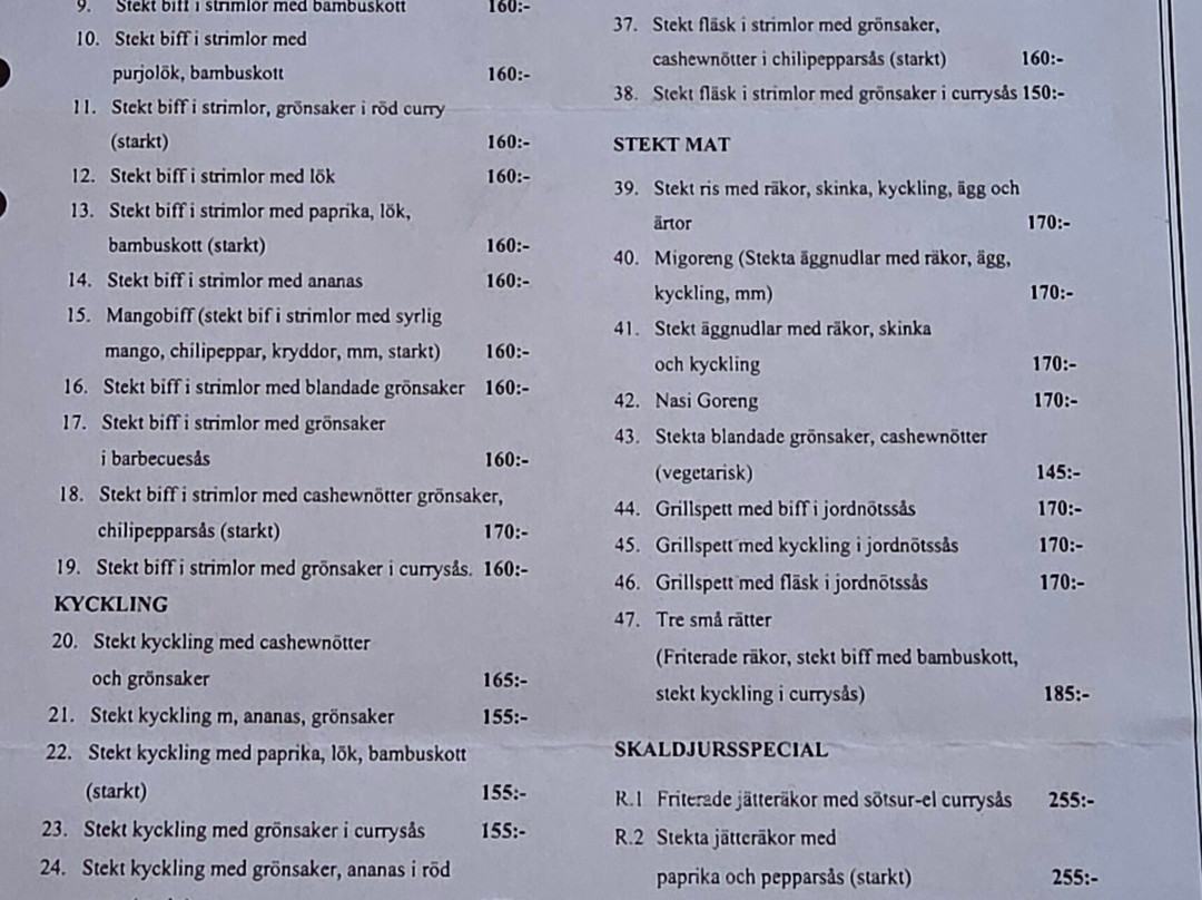 ¥¥ - ¥¥¥,泰国菜